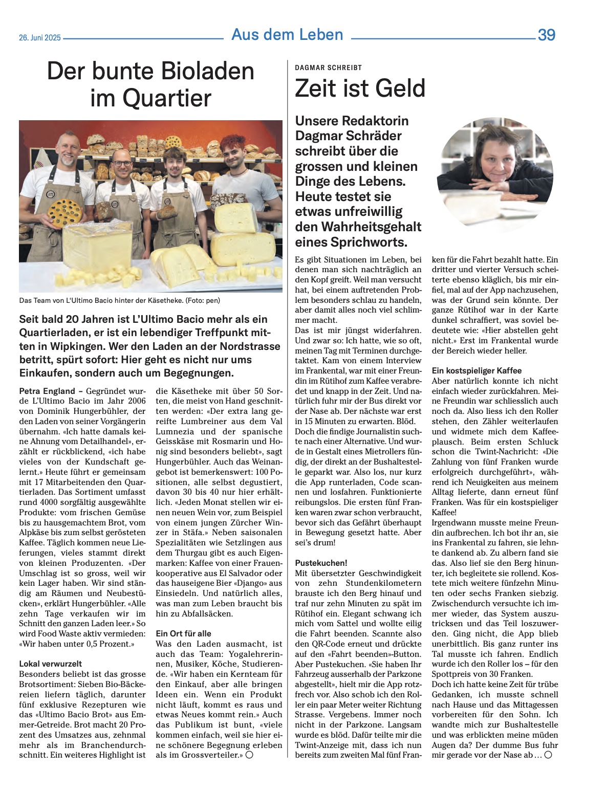 «Seit bald 20 Jahren ist L’Ultimo Bacio mehr als ein Quartierladen, er ist ein lebendiger Treffpunkt mitten in Wipkingen. Wer den Laden an der Nordstrasse betritt, spürt sofort: Hier geht es nicht nur ums Einkaufen, sondern auch um Begegnungen.»